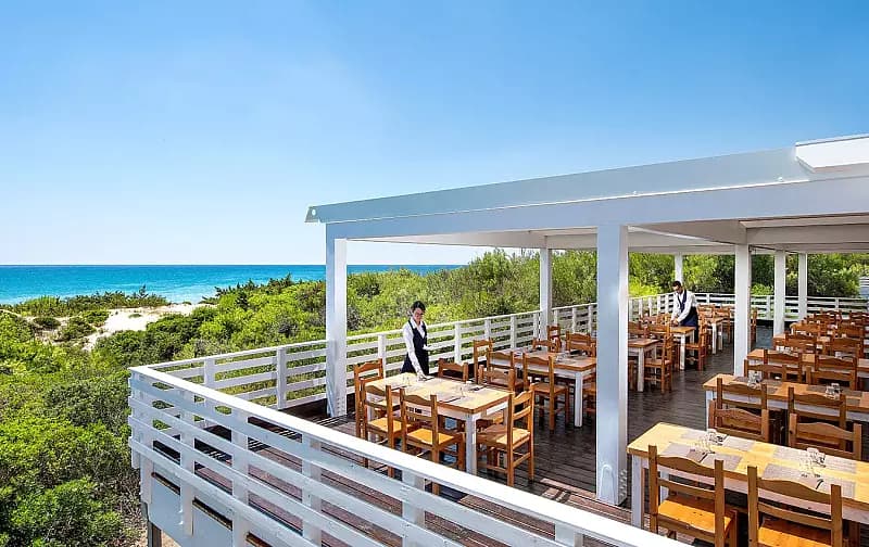 Per quanto riguarda la ristorazione, il villaggio offre quattro ristoranti che servono una varietà di piatti per soddisfare diverse esigenze alimentari, inclusi opzioni per chi ha intolleranze. Gli ospiti possono gustare una cucina variegata e di qualità, con piatti preparati con ingredienti freschi e locali.
